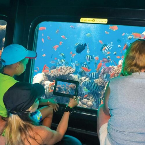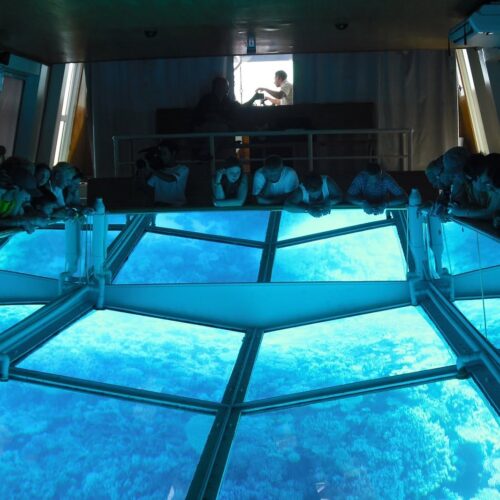 Schon während der Fahrt eröffnet sich Ihnen durch den transparenten Glasboden ein einzigartiger Blick in die farbenprächtige Welt unter der Wasseroberfläche. Bunte Fischschwärme, lebendige Korallenriffe und faszinierende Meeresbewohner ziehen direkt unter dem Boot vorbei und sorgen für unvergessliche Eindrücke.