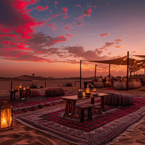 Zum Abschluss des Tages erwartet dich ein BBQ-Abendessen in entspannter Atmosphäre unter freiem Himmel. Während die Sonne untergeht, entsteht eine besondere Stimmung in der Wüste. Danach kannst du den klaren Sternenhimmel beobachten, der fernab von Stadtlichtern besonders eindrucksvoll wirkt.